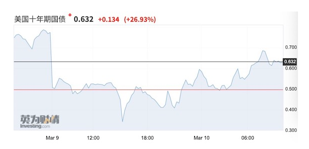 北京時間3月10日下午1時左右,早前瘋漲的美債開始下挫,下午1:30左右美債期貨竟在暴跌後觸及熔斷。