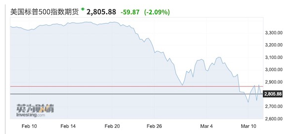 到當日晚18點左右,作為美股的先行指標,美股三大股指期貨持續拉升,標普500指數期貨漲近5%至2879點,觸發向上熔斷交易限制。截至3月11日淩晨收盤,美股集體收漲近5%,不過截至中午,美股期貨又開始轉跌。